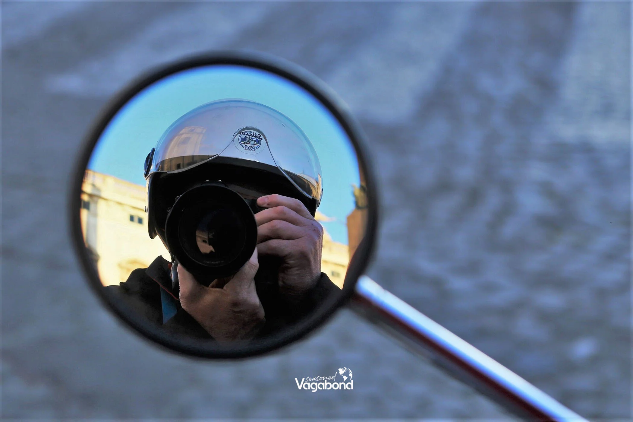 Luca handed out helmets with disposable head covers. Once on, he tested the in-helmet speaker system that allowed each of us to hear his narration during the tour. His first message was that our usual speed would be less than 25 miles per hour. That gave us a chance to snap some quick shots while tooling past city highlights. Then we climbed aboard while a phalanx of onlookers admired the Vespas, taking photos of the unique side cars.