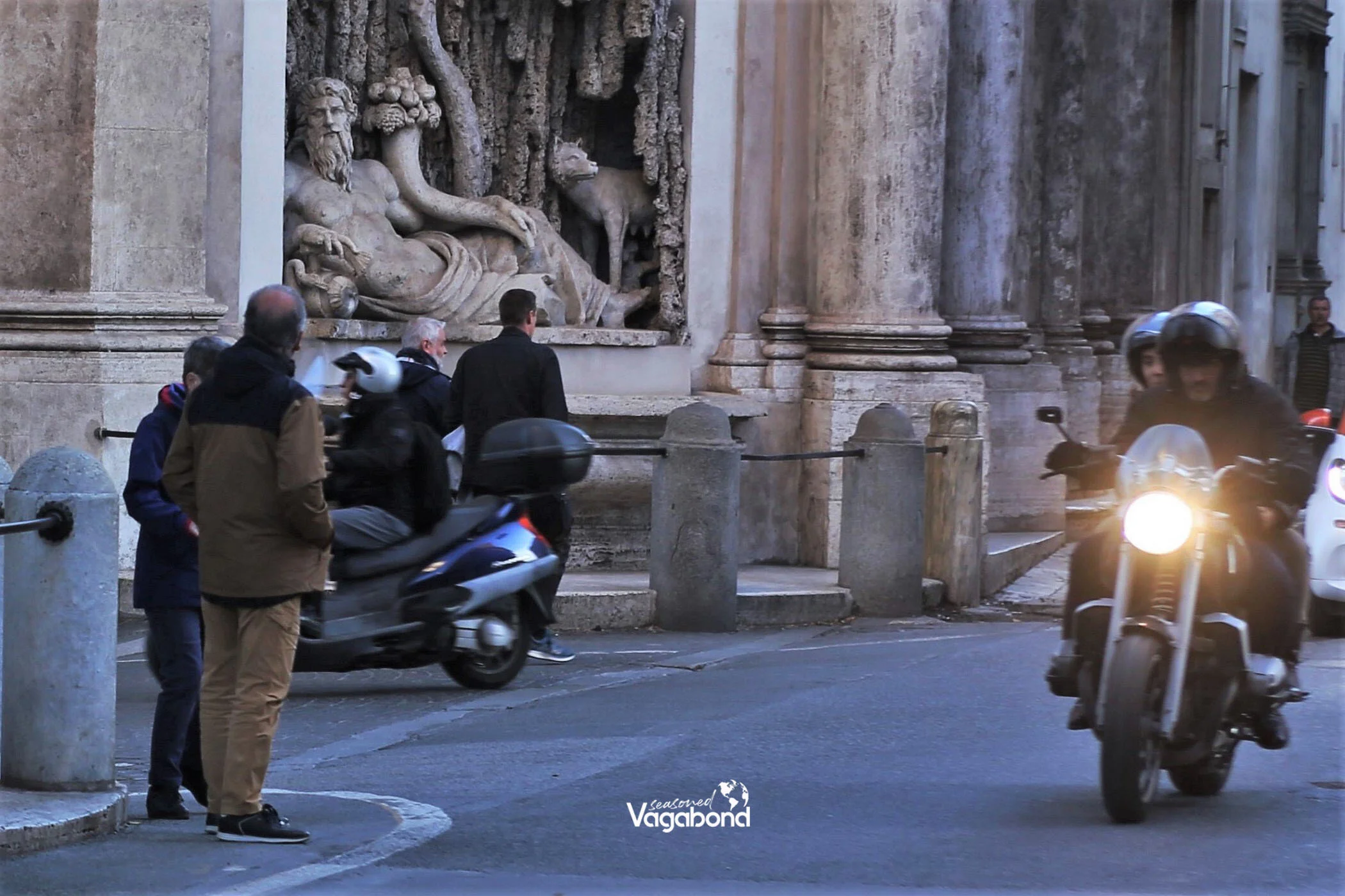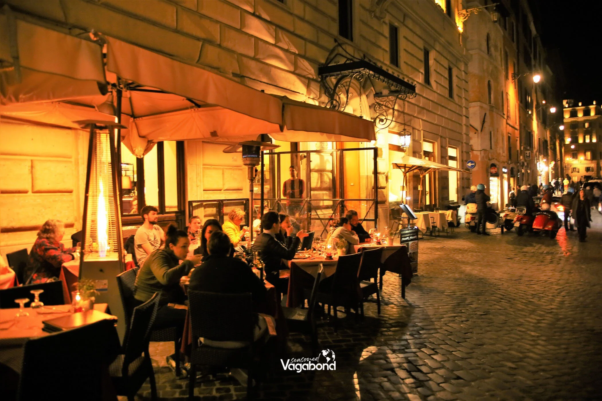 Night time vehicle traffic might be less hectic, but we found the street life more vibrant under the lights. We made several stops for photos and to admire vistas of the Eternal City at night. As grand as the bird’s eye view of the city from the crest of Gianicolo Hill was, for example, it was the pulse of people on the streets, pausing to window shop or lingering over wine and pasta at an outdoor cafe that made life in Rome both real and immediate. That, and of course the wind in our face as we rolled through one of the world’s most loved and visited cities.